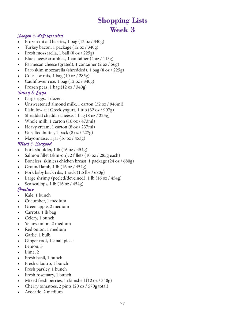 - 5-Week Meal Plan with weekly shopping lists to simplify meal prep