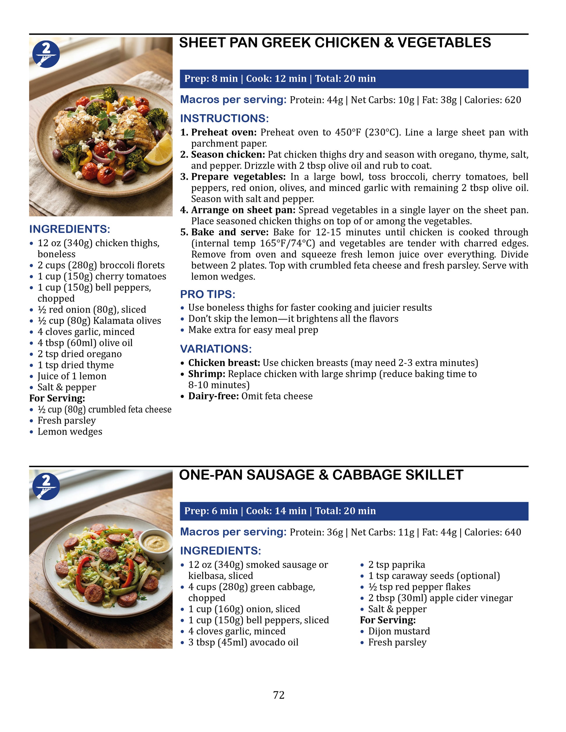 ✔️ 100 original high-protein, low-carb recipes (20 minutes or less)