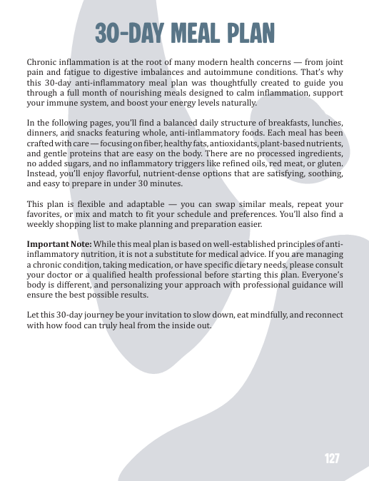 This 30-Minute Anti-Inflammatory Diet Cookbook for Busy Beginners is perfect for anyone looking to start their journey into healthy eating, without the overwhelm. Whether you're aiming to reduce inflammation, support gut health, or simply eat better, this cookbook makes it easy, fun, and delicious!